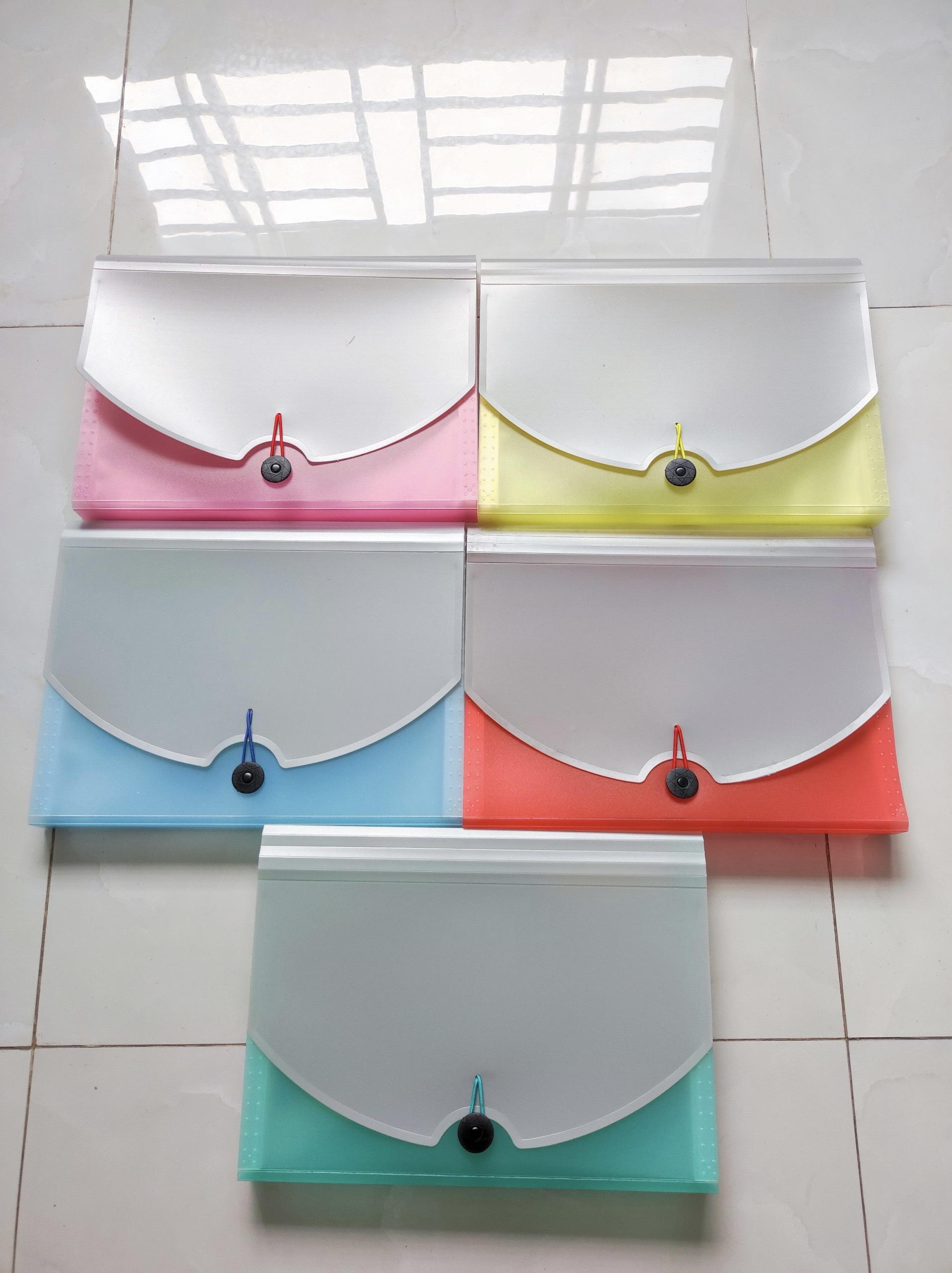 Đặc điểm: Gồm 12 ngăn, khổ A4 có nắp đậy. Nắp được đóng bằng dây có tính đàn hồi cao.